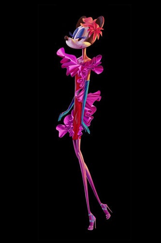 For instance, this is not a normal Minnie Mouse. Freedman explains, “The standard Minnie Mouse will not look so good in a Lanvin dress. There was a real moment of silence, because these characters don’t change." Though Alber Elbaz may disagree with the judgment that his clothes aren't made for a mouse-shaped gal, Barneys wanted the attention to detail to be so perfect that it actually flew down a model to walk for animators. "When you see Goofy, Minnie and Mickey, they are runway models," Freedman says.