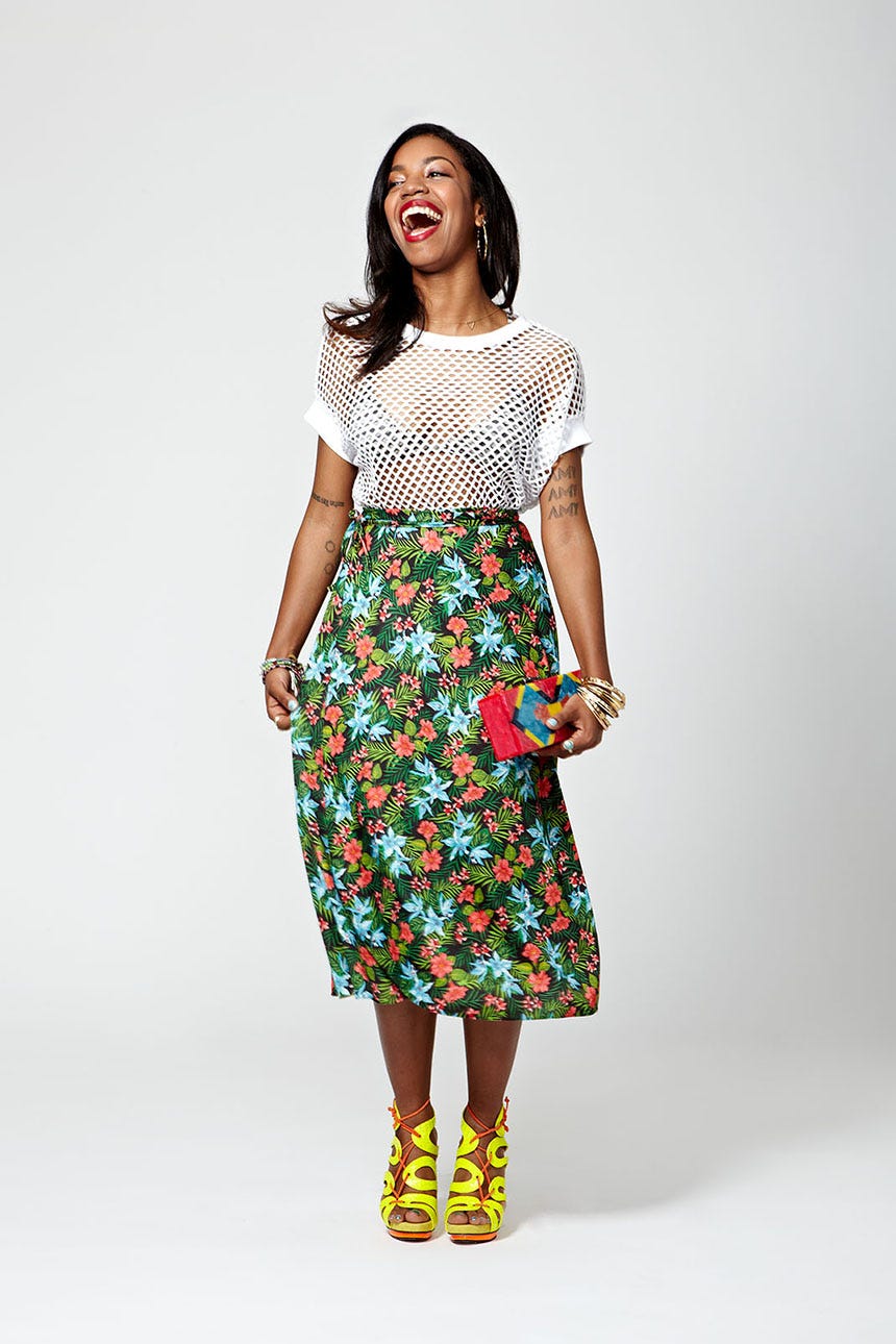 PHOTOGRAPHED BY GEORDY PEARSON."I love big hair and big cat-eyes. I only wear neons and patterns. I just like bright, flashy things. I feel like you should be unafraid to just show up and say, ‘I’m here, bitches!’ Make your mark. It boosts my confidence onstage — it kind of makes me feel like 'Yeah, I’m really hot right now; this is going to be an awesome show' — but it’s filtered into my everyday life, too. All these colors and patterns are inside of my head, so it feels good to bring them out and show other people."
