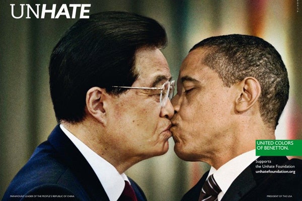 Today, they revealed their newest initiative with the Unhate Foundation "to stimulate reflection on how politics, faith and ideas, even when they are divergent and mutually opposed, must still lead to dialogue and mediation.” In conjunction with the ads, there are global guerilla initiatives involving giant banners of our political leaders kissing each other. Click through to see all the surprising duos, and make sure to check out the UnHate Foundation. Now… everybody make out!