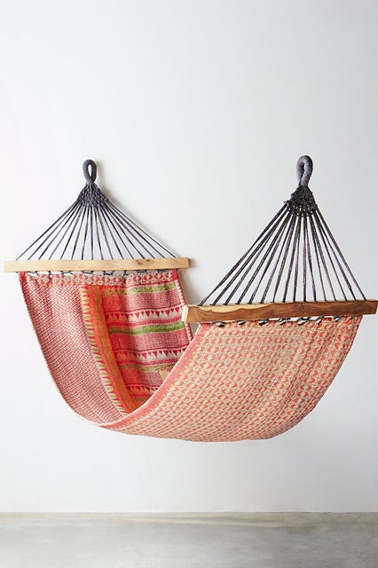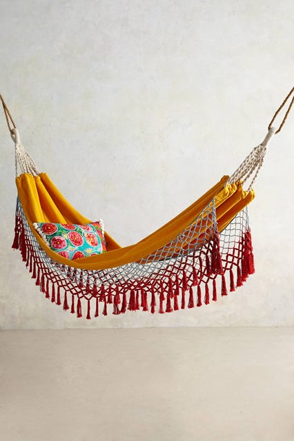 No doubt you've had this momentous day circled in red on your calendar for some time now: It's International Hammocks Day. Okay, we didn't, either. Made-up holidays are a joke. "Talk in an Elevator Day" (July 25, by the way) and "Wiggle Your Toes Day" (August 6) are not worthy of themed cocktails or even so much as an iCal alert. But, Hammocks Day? This is one we can actually get behind, because the lofty nests are the definition of sweet, summer laziness. And, the auspicious occasion seems like the perfect excuse to make use of the outdoor essentials inside our small apartments.