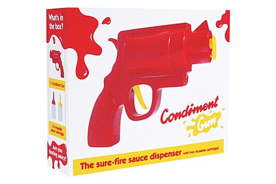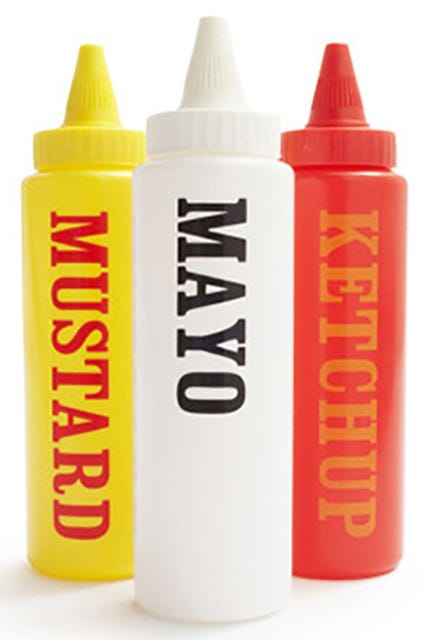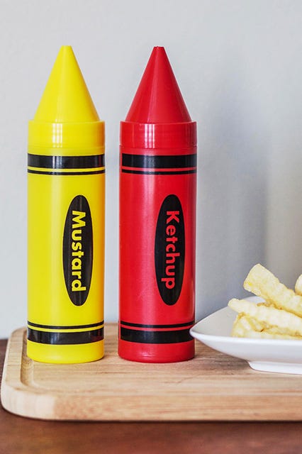So, we found five options from a squirt gun to a mini tomato container to add a wink to the condiments table. An added bonus? Squeezing ketchup from a giant crayon is a surefire conversation starter when you don't know anyone at that BBQ. Your guests will thank you.