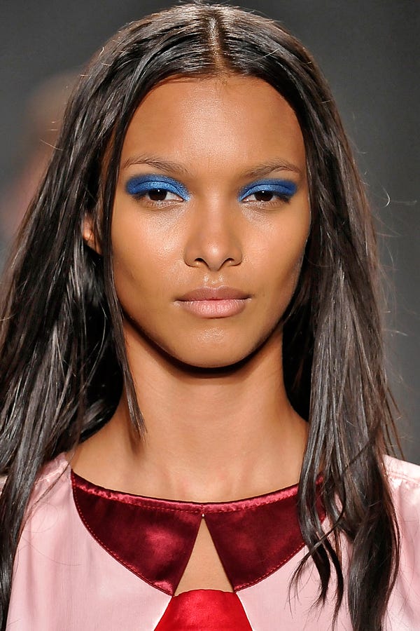 Blue may not be a new color in the world of beauty, but that doesn't mean we can't look for fresh, creative ways to wear it. This summer, we've found ourselves captivated by azure beauty statements that do things a little bit differently: Think indigo hair streaks and teal inner eyeliner. Basically, if you're looking for a traditional blue smoky eye, you won't find it here.