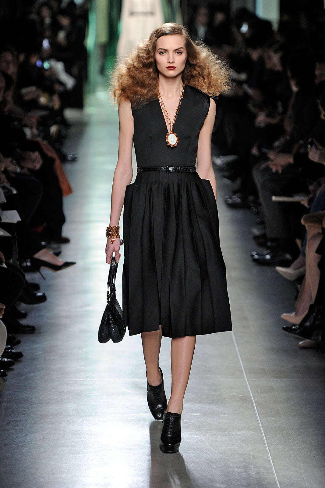 This being Bottega Veneta, the pieces to watch were the accessories, and the metal-handled hinge bags, woven, leather lunch boxes, rope-chain pendants, and minimalist, heeled lace-ups are sure to become editor favorites.