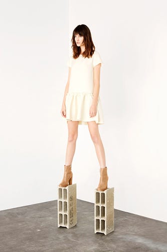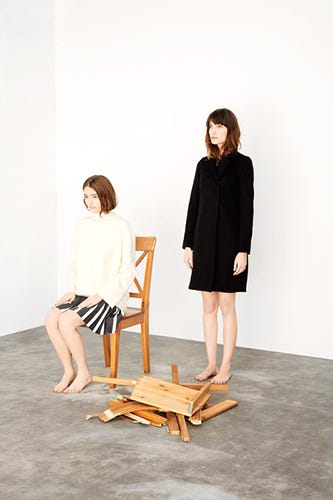 In the new lineup of images for the fall '14 collection, the models forgo the formalities one might observe when perusing an exhibit. Instead, these babes go buck wild in the bare studio space. While dressed in sweet florals, fuzzy knits, and structured pleats, they look like the epitome of sweet, smart, and cultured women who gallery-hop on the weekends. But, trust, you turn your back, and they're standing on sculptures, obviously ignoring those "Do Not Sit" signs, and taking matters (i.e., clay) into their own hands. C'mon, ladies, posing like a statue? Breaking things? We can't take you anywhere!