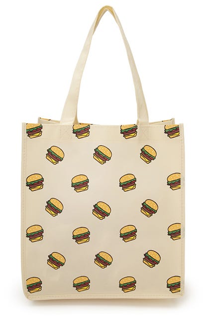 If you smell what we're stepping in here, click onward to check out the 10 under-$50, canvas totes we've corralled. The cheapest rings in at a whopping $1.80 — although we never need much incentive to carry a cheeseburger-print shopper or Warhol-inspired piece. Plop away.
