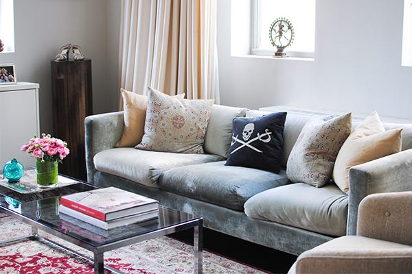 With some apartments, it’s love at first sight. Homepolish designer, Michele Bitter’s Chelsea one-bedroom is no exception, merging Hollywood retro-glam with a playful streak: Pirate inspired accents are scattered throughout — a small tribute to her great, great, great, grandfather, who was a bona fide rum sniffer for the Royal Navy in Jamaica, and a bit of a family legend.