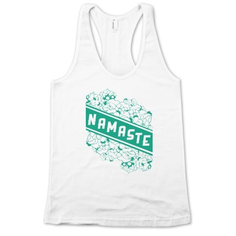 Forever 21 Geo Print Yoga Leggings, $12.80, available at Forever 21; Aerie Seamless Racerback Bra, $19.95, available at Aerie; Jade Yoga Harmony Professional Yoga Mat, $63.95, available at Yoga Outlet; Trigger Point Performance Self Myofascial Release and Deep Tissue Massage Ball, $19.95, available at Amazon; Activate Apparel Namaste Banner, $27, available at Activate Apparel.