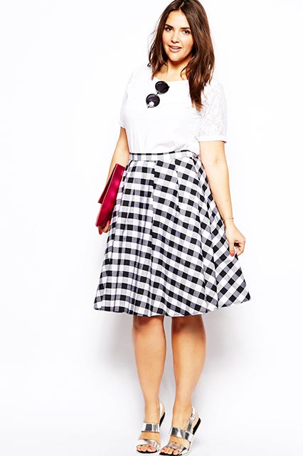 Circle skirts are so easy to wear, universally flattering (I know — we hate that word, but they are!), and can actually be pretty bad-ass with a bit of strategic styling. The inherently prim shape pairs perfectly with crisp button-down shirts, sleeveless turtlenecks, cropped knits, cheeky T-shirts, and of course, leather jackets. Need a few suggestions in size curvy? Fret not: Click through for nine of my must-haves!