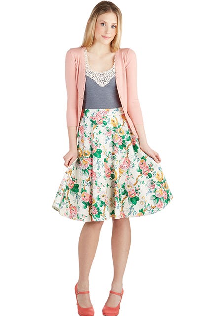 Now that we're heading into the warmer months — if it does actually decide to stay warm in NYC —pants are beginning to feel a bit too restricting. And, while dresses are great for those days that you don't even want to think about your outfit, there's something about separates that makes getting dressed that much more fun. Personally, I classify skirts into two categories: slink and flounce. And sure, there's a time and place for some slink, but I much prefer a flounce. Enter: the circle skirt.