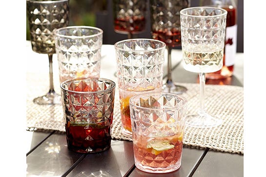 You'll be happy to learn this jayvee entertaining pitfall can be avoided — without having to regress back to the days of those keg-party red cups. Instead, invest in a set of unbreakable glassware. Made from acrylic or fancy plastic, these stunners kill the college cup in durability and beauty, so you can look classy but still party hard.