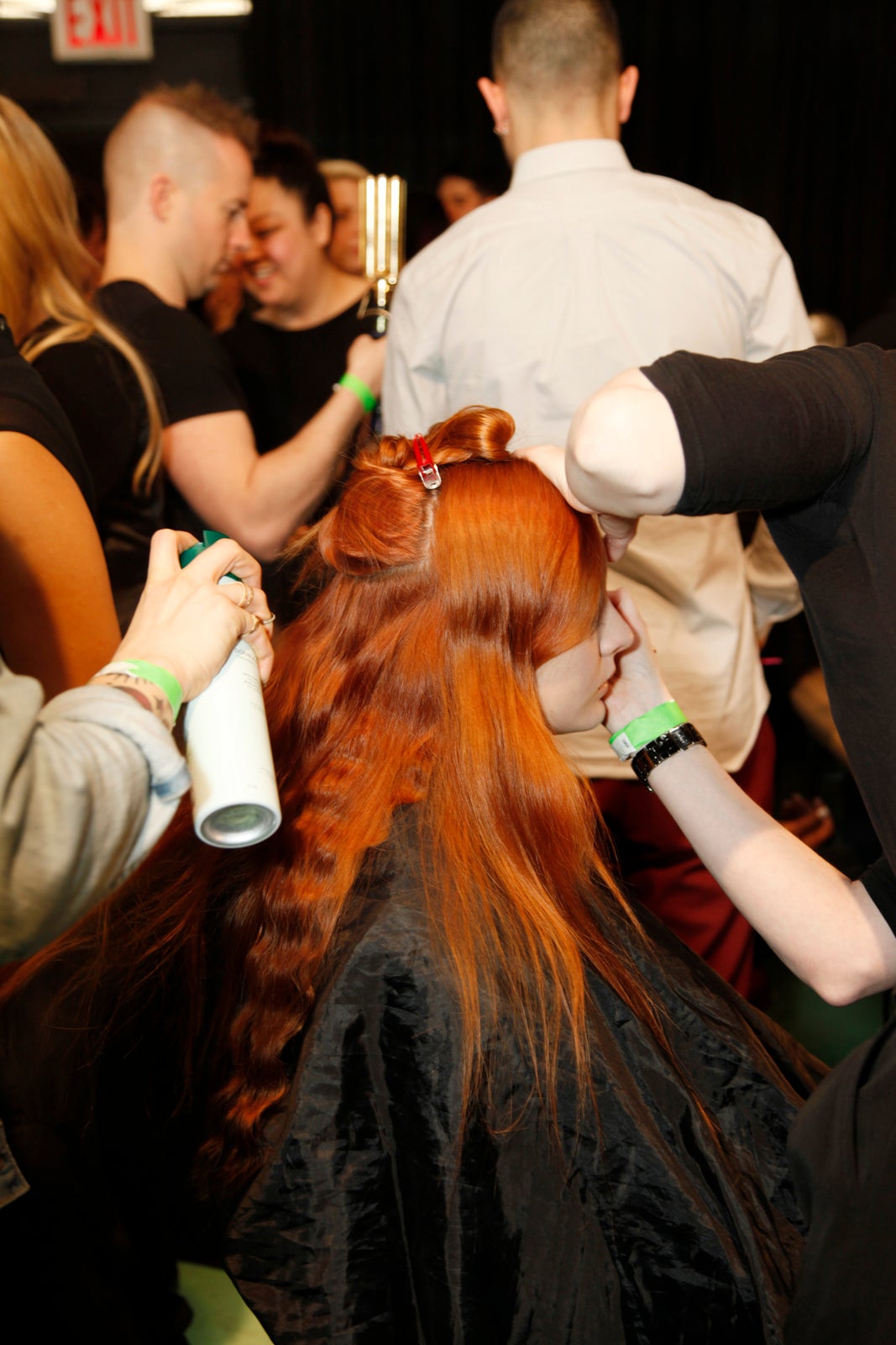 Working with Creatures of the Wind for the first time, nail pros Jan Arnold and Roxanne Valinoti of CND wanted to create a look that reflected the "modern, unique, artsy-but-sporty" aesthetic of the Creatures girl. They opted to go for a graffiti nail that featured a bisected nail down in two corresponding colors, with multi-colored squiggles overlaying one half of the nail. While the nail looked complex, Arnold says it's relatively easy to score at home. She says to simply paint the nail in two colors, wait for it to dry, add a topcoat and wait for that to dry, then use fine-tipped Sharpie markers to do the doodles.