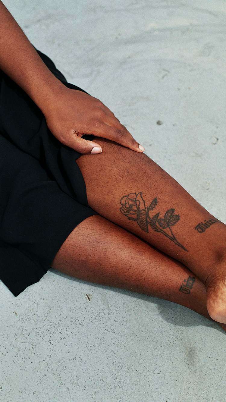 Ich bedecke Stück für Stück meine Beine mit Tattoos. Ich habe auch auf beiden Armen welche, auf meinem Rücken, aber meistens auf meinen Beinen. Ich sehe meine Tätowierungen als großes Ganzes an. Sie helfen mir dabei, meine eigene Identität zu kreieren und sind ein wichtiger Teil meines Selbstausdrucks.