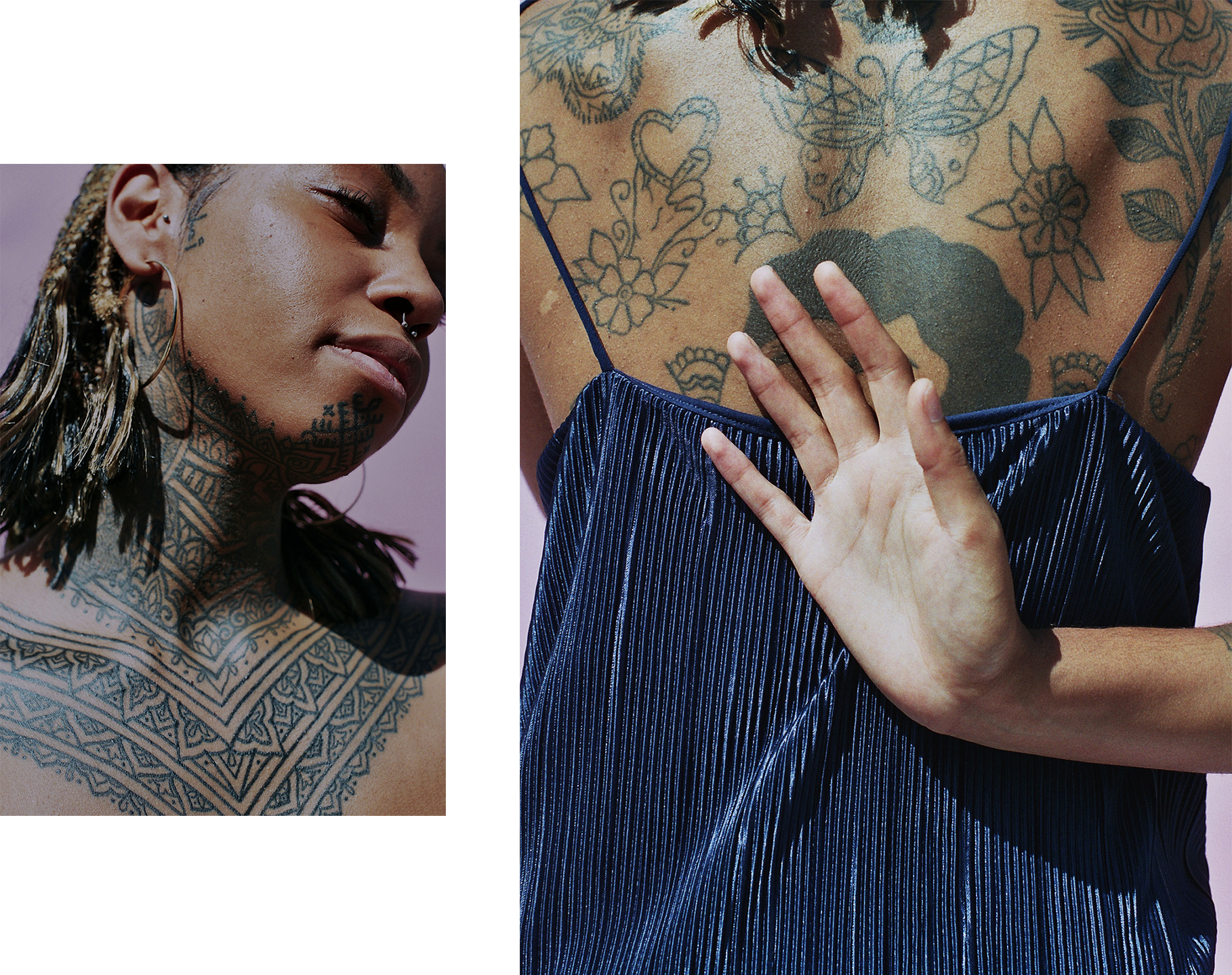 Ich mag es lieber, wenn man meine Tattoos sieht. Es ist nicht so, dass ich absichtlich Sachen trage, um sie zu zeigen, aber wenn sie nicht sichtbar sind, denke ich oft ‚Oh, das ist aber schade!‘, weil ich finde, dass sie ein Teil von meinem Gesamteindruck sind.