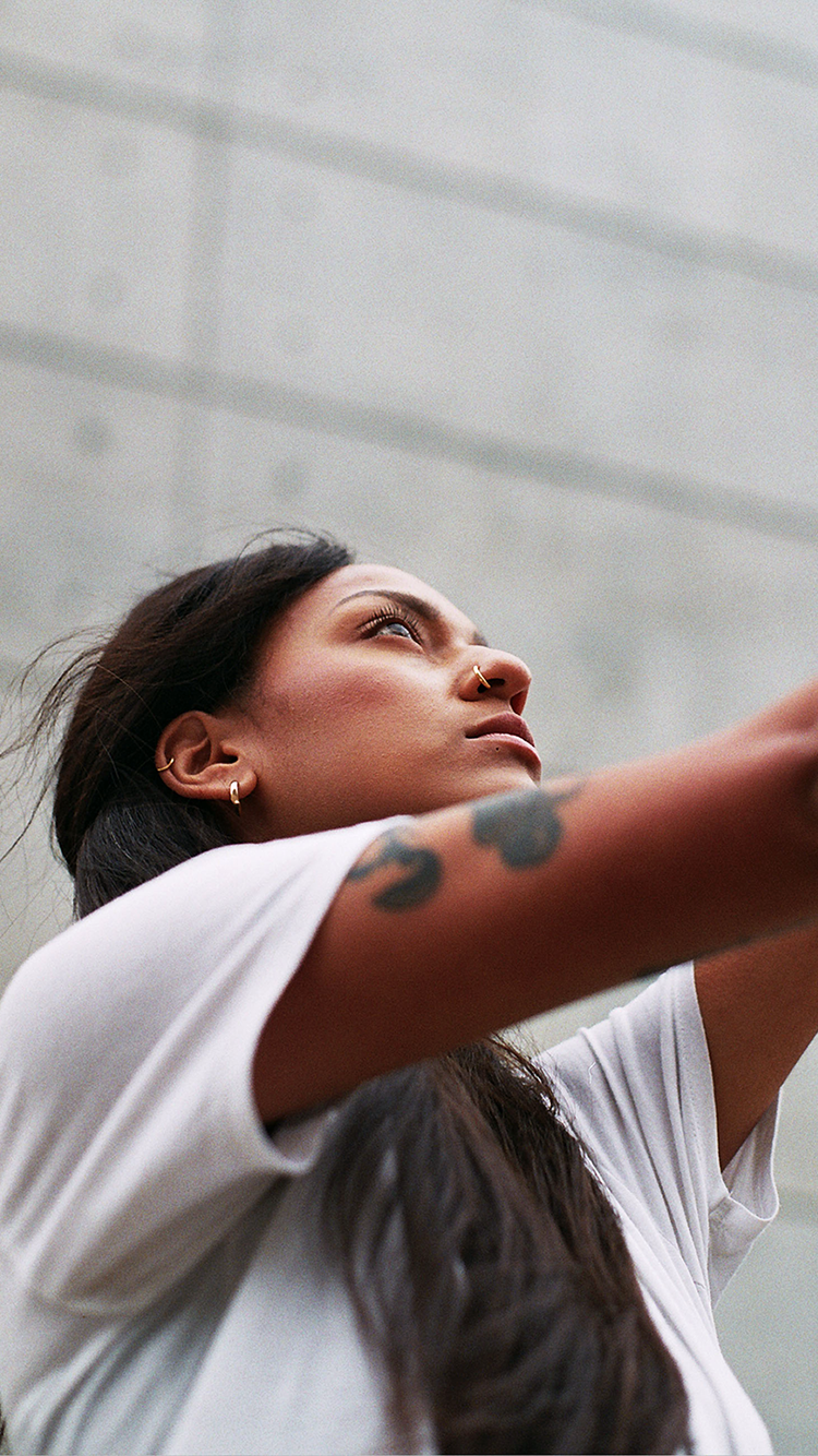 Ich gebe meinen Tattoos nicht wirklich eine Bedeutung, sie sind einfach ein Teil von dem geworden, wer ich bin und wie ich mich ausdrücke. Ich neige dazu sie dann stechen zu lassen, wenn ich das Gefühl habe, etwas durchzumachen. In der heutigen Gesellschaft will jede*r allem eine Bedeutung geben, um sich selbst zu rechtfertigen, aber wem gegenüber rechtfertigt man sich? Dir gegenüber oder den anderen Menschen? Menschen verlassen sich auf die Idee von ‚Bedeutung‘ – vielleicht bist du nicht selbstsicher und solltest kein Tattoo bekommen! Das bedeutet aber nicht, dass ich keins bekommen sollte.