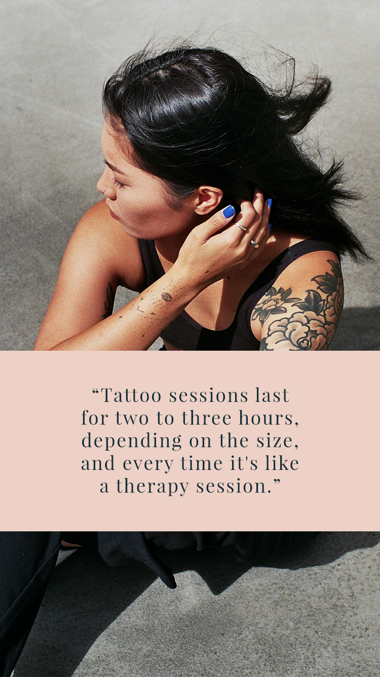 „Meine Eltern sind super altmodisch, wenn es um Tätowierungen geht. Auch wenn ihre Generation manchmal die Kultur der jüngeren Generationen versteht, denken sie immer noch, dass es einem das Leben schwer macht, wenn man tätowiert ist – eben so, wie es war, als sie selbst jünger waren. Aber ehrlicherweise stimmt das nicht.”
