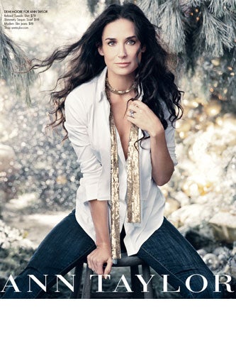 Unless you've been living under a rock (or prefer the Economist to Star), you've read about Ashton Kutcher's cheating scandal with the predictably perky-breasted Sara Leal, who, like a string of other recent alleged celeb mistresses, hasn't met an eyeliner she doesn't like. Regardless of whether the new Two And A Half Men star did or didn't stray, it sure hasn't affected Demi Moore's pact with whatever angel has kept her looking ageless, as evidenced by her newest round of ads for Ann Taylor. The flawless actress poses in a variety of her favorite seasonal separates for the brand's holiday '11 campaign — debuting in magazines in December — shot by Norman Jean Roy on an L.A. set inspired by a Nordic winter wonderland. Though she's veering a bit into Katie Holmes territory (uh, slide number two, anyone?), the former face of the brand, in some of the shots, we think Ms. Moore's ability to glow under pressure is commendable, and her unlined skin is just enviable. Ashton, WTF were you thinking?