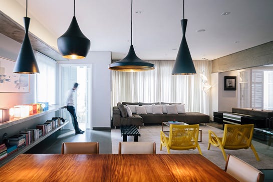 Flavio Castro of FC Studio took this compartmentalized, family apartment and turned it into the perfect space for a young, single person in advertising. Located in São Paulo, Brazil, the Maranhão Apartment now has one large, open space to house the living room, television room, and kitchen, instead of having them divided up as they were before.