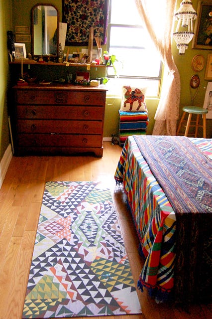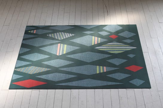 Brooklyn-based design studio Domestic Construction is a collaboration between artisans Maureen Walsh and Trish Andersen. Not only do they work as installation artists and stylists, they also design colorful, graphic floor mats for indoors and out called Grounded.