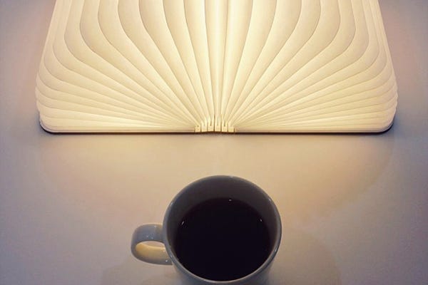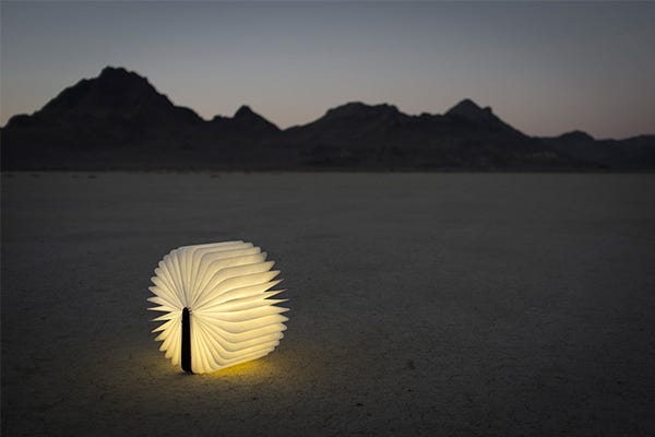 While Lumio looks like a bound book at first glance, you’ll realize as soon as you begin to open it up that the “pages” don’t contain words. The wooden cover holds the “pages” that are made from sturdy Tyvek material that expands and emits a warm, diffused light. The small, lightweight design makes it perfect to tote anywhere so that when you’re in need of some extra light, simply open it up, and boom, light.