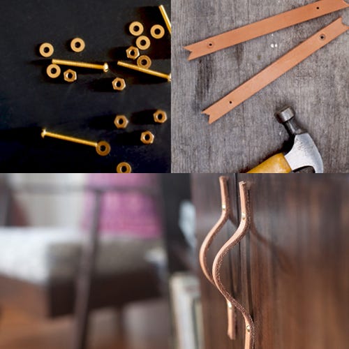 Julia and I spent what felt like 10 years in Ikea over the holiday break, so I’ve had furniture and hardware on my mind for a while now. What I love most about their furniture is the way it feels like a blank canvas just waiting for customization. I’m taking a break from painting furniture (I can never get it to be as smooth as I want), but I’m still working on custom hardware and pulls. Last year Amy and I each took a crack at making our own leather cabinet pulls and they’ve been my most successful DIY hardware project yet. I never got around to photographing them for a post, so I was happy to hear from Steven Soria of Make Smith Leather Co. who recently collaborated with Stacy and Rick of Love, Oliver and Michelle on some simple but beautiful DIY Leather Drawer Pulls.
