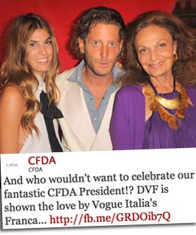 By Erin GrantCFDA: "And who wouldn't want to celebrate our fantastic CFDA President!? DVF is shown the love by Vogue Italia's Franca... http://fb.me/GRDOib7Q" A more ...