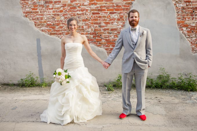This Chicago couple had their wedding in New Orleans, the bride's hometown. The venue — an old coffee warehouse that had been converted to a wedding space — provided the perfect backdrop and the DIY details, including the save the dates, invitations, calligraphy, centerpieces, and wedding cakes, made it feel personal and unique.