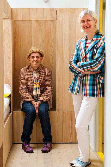 Thanks to designers Nina Tolstrup and Jack Mama, an aging workshop in London’s once-gritty Bethnal Green is reborn as a colorful, custom-built guesthouse.