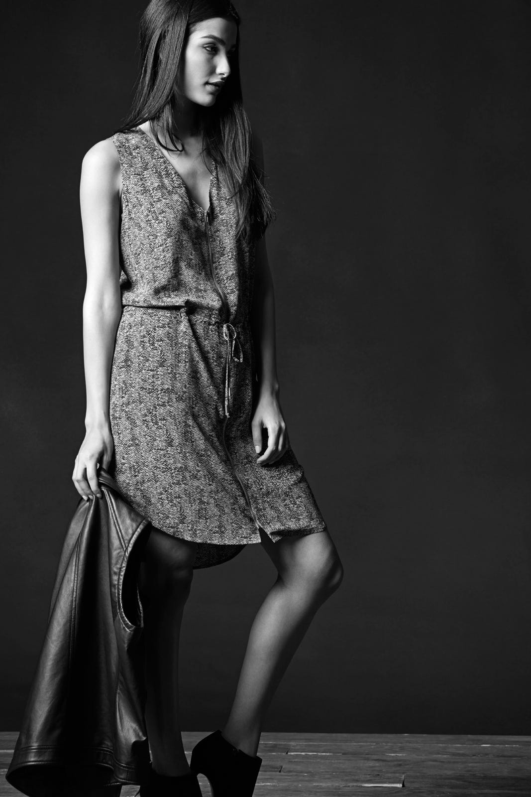 However, getting caught beneath the glare of that aforementioned spotlight might have brought on a little self-examination. Without abandoning its nonchalant, effortless M.O., the brand has updated its offerings, which it now presents with a moody, dramatic lookbook showcasing leather jackets, sheer sweaters, and silken jumpsuits. It's much more your speed than your grade school Principal's. And, Eileen's in good company. When it comes to brands reinventing to stay with the times, it's among names like Ann Taylor, Abercrombie, and Kenzo, to name a few. Click through to see the new collection, and actually see Eileen Fisher — possibly for the first time.