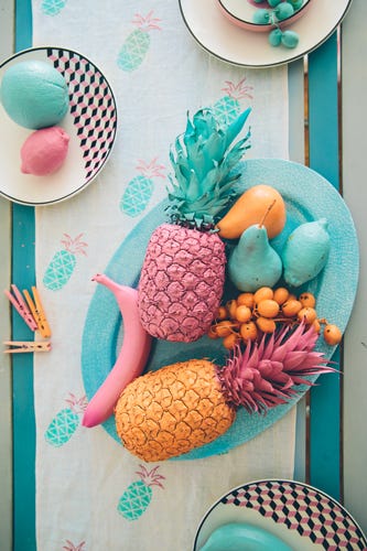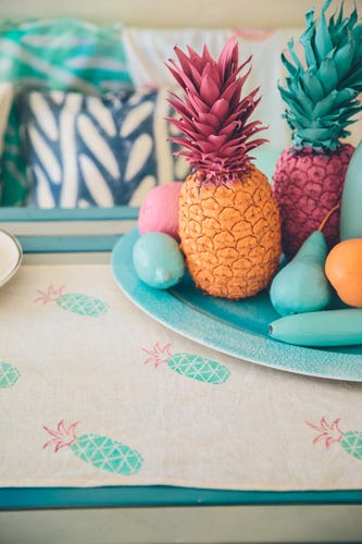 Well, Cali-based homegoods brand Elephant Landing is here to lend a helping hand. Its Spring ’14 line of bright throws, tablecloths, table runners, pillows, and scarves is just what we need to give our homes a mini facelift. We’re talking pineapple-embellished (!!) adornments and patterned pieces that will add zest to any nook.