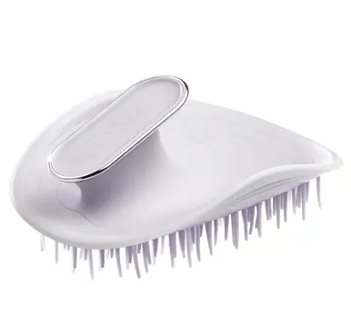 The Manta brush — named for the aquatic animal it resembles — skips a traditional handle in favour of a round design that fits onto your hand, similar to a scalp massager. The biggest draw, aside from the ergonomic benefits, is the flexible body construction that contours to the scalp and moves with the hair like a glove as opposed to creating tension and breakage.