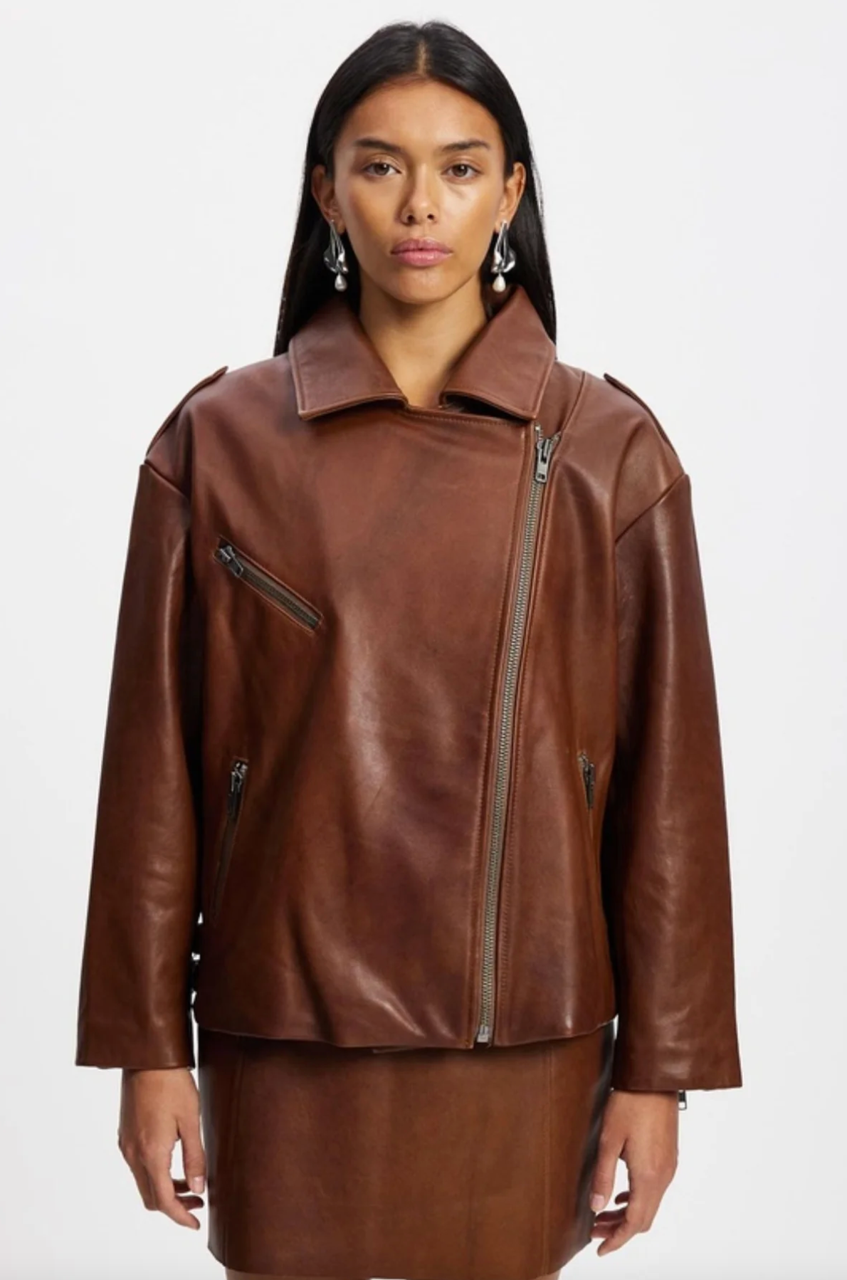 When you hear the words 'leather jacket', it's an almost natural instinct to reach for the blackest jacket on the rack (darker than my soul, thanks). But brown leather jackets are having a hot moment. Not only is it actually more flattering than black against a wider variety of skin tones, but brown leather jackets also instantly elevate a look with a retro feel.