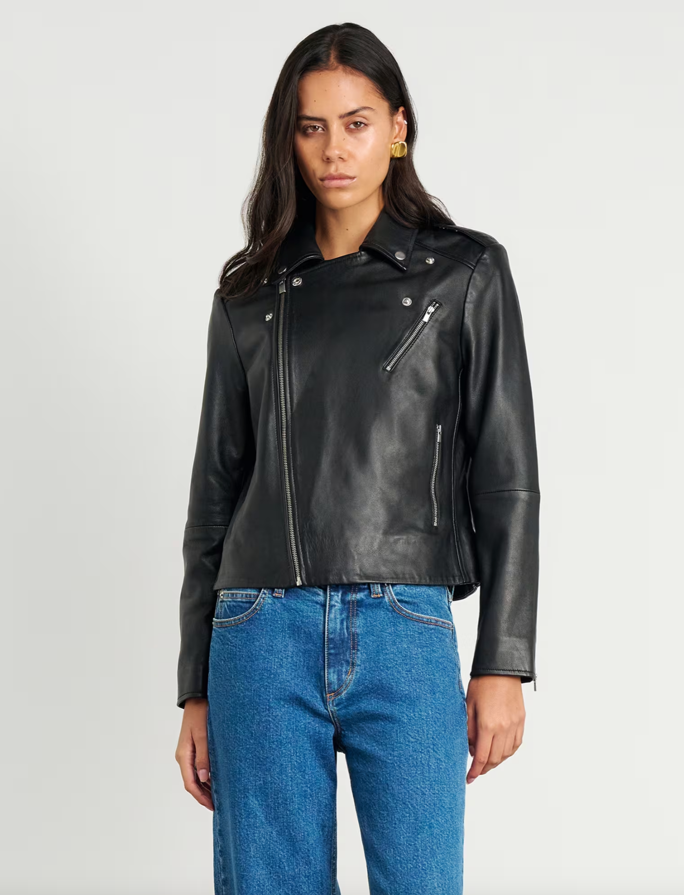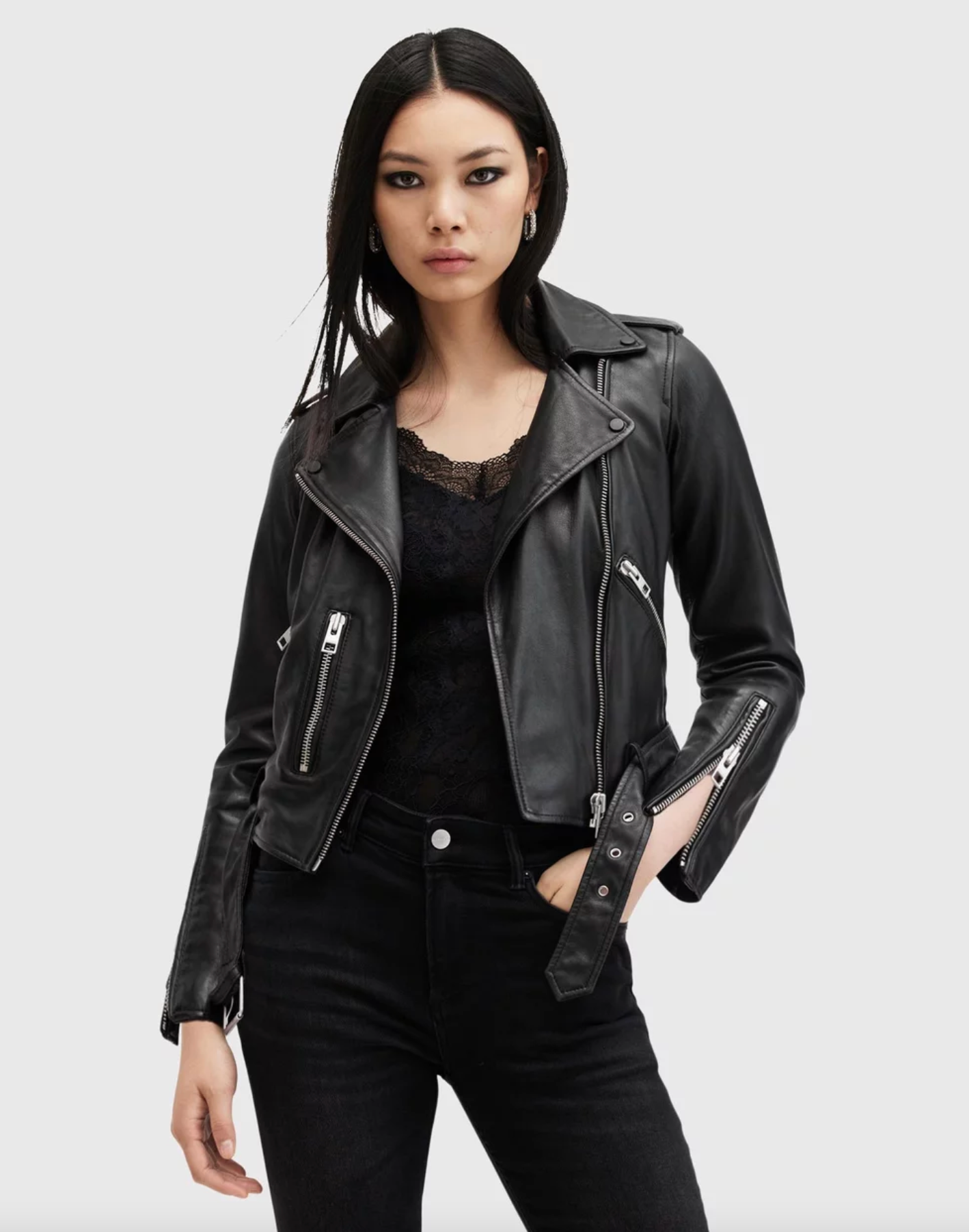 Ah, the classic biker jacket. This style is probably what immediately springs to mind when someone says the words 'leather jacket'. With a pronounced collar and zip, biker jackets are usually more fitted and feature customisable belts and studs (lots of 'em). While they were popularised by 1950s rock 'n' roll hooligans, this style of leather jacket has steadily cemented itself in many wardrobes. Tough, yet feminine. Edgy, yet classic.