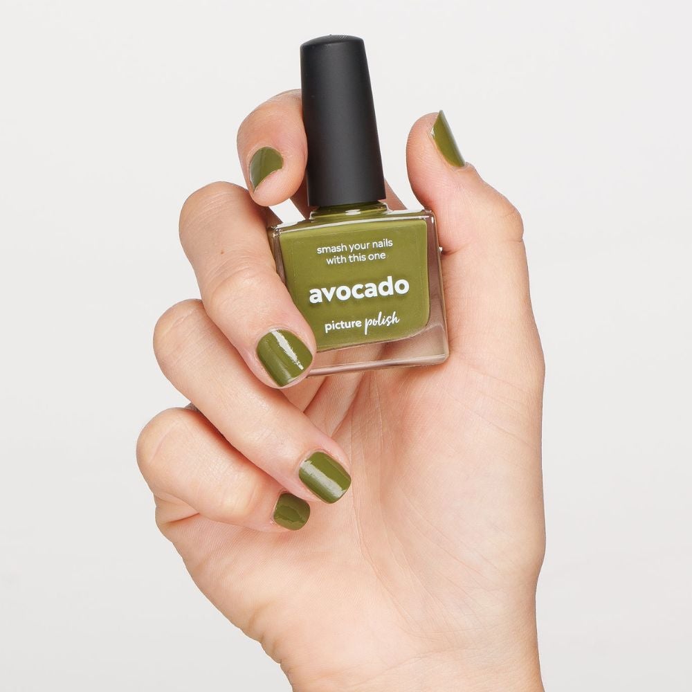 For something a little more grounded and earthy, we're loving this olive French Tip manicure by @nailsbyalsn. It's minimalist, clean and elegant. Recreate this look at home with Picture Polish's Avocado Nail Polish, $17.95.