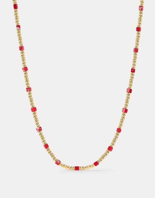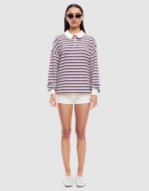 Petite people are often discouraged from wearing horizontal stripes because they allegedly draw the eye from side to side rather than up and down — potentially making you look shorter. The key to styling stripes is finding a point of commonality, which in this case is the red hue featured in both the polo shirt and the shorts.