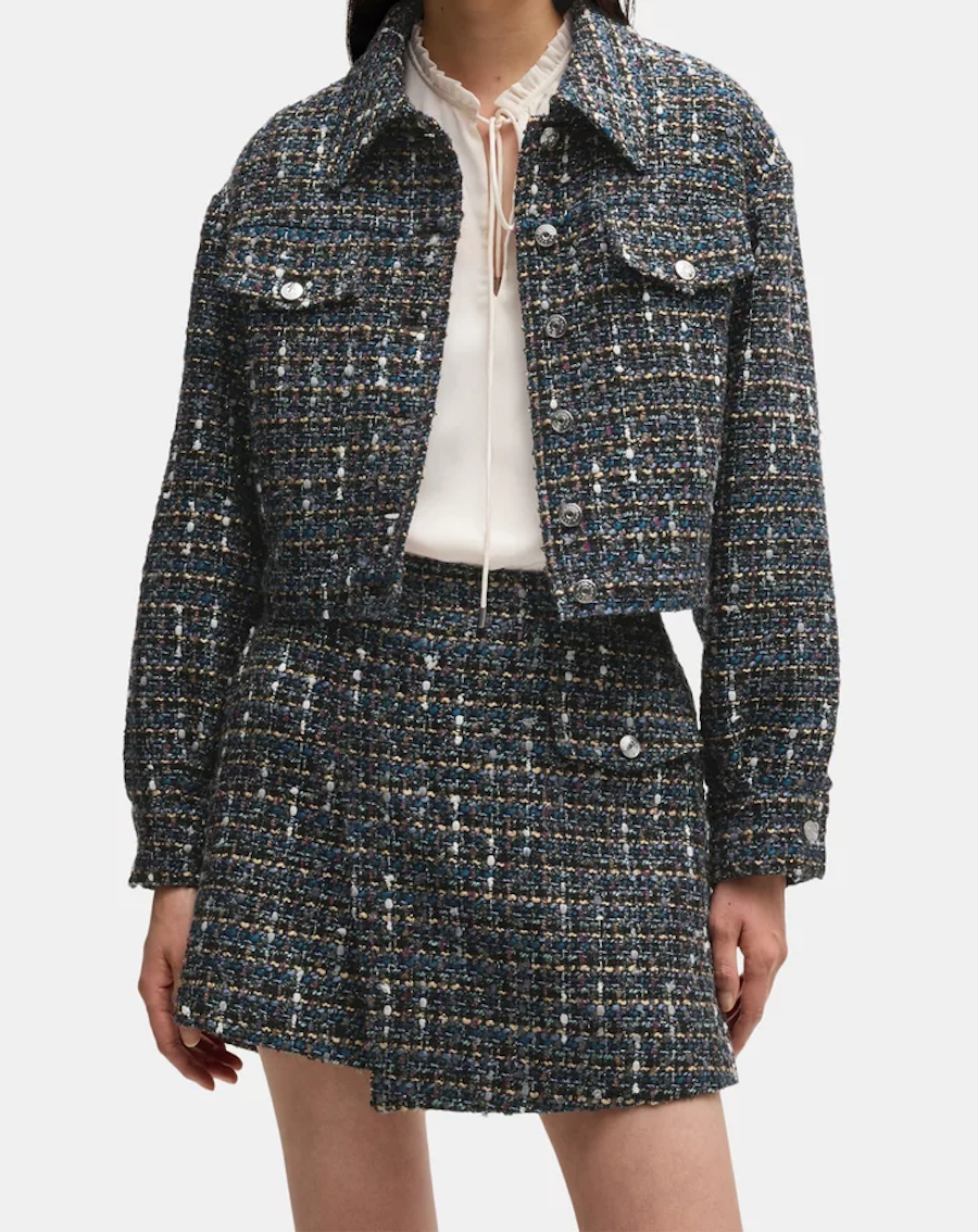 Tweed is naturally not the lightest material, which is why it’s such a staple for fall and a solid choice for the current transitional weather. For a style that can flex days swinging between freezing temps and cool breezes, go for long sleeves. If shopping for a tweed jacket to carry you from season to season, look for airy styles that might, for example, have short sleeves.