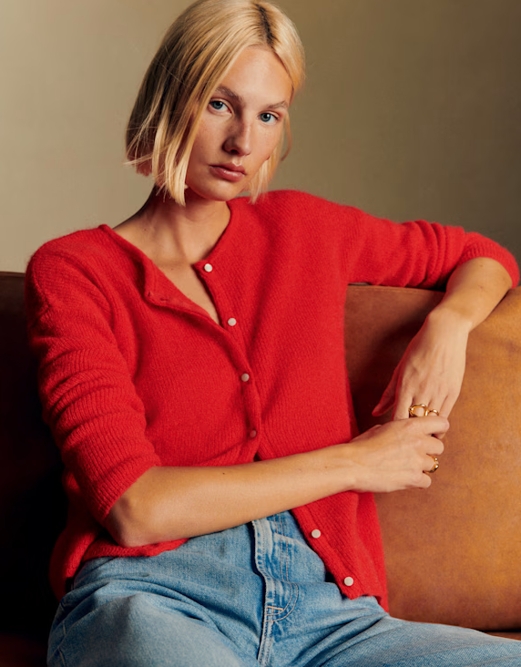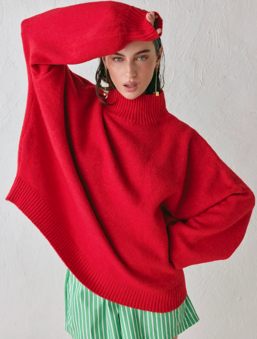 You can never go wrong with a strong arsenal of classics in your wardrobe. Be sure to add a tomato red sweater to your collection for an easy way to breathe new life into those staples.