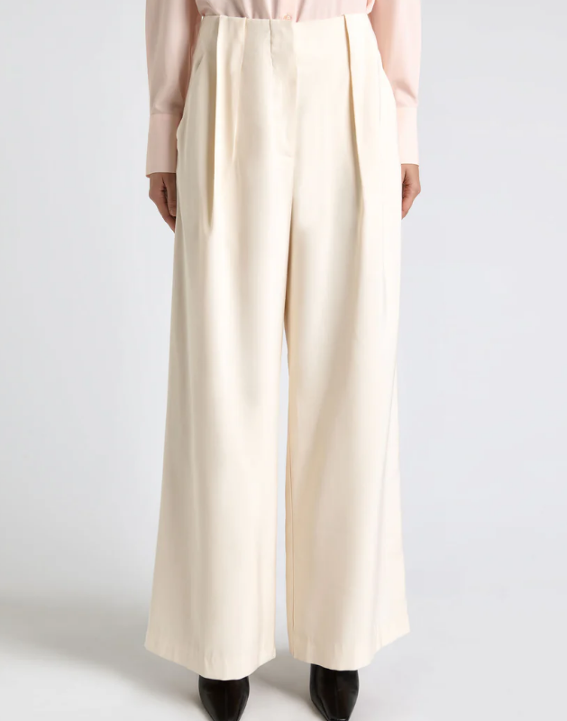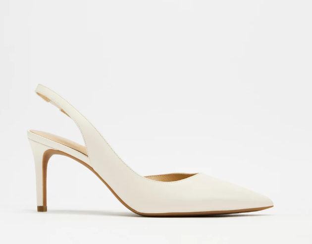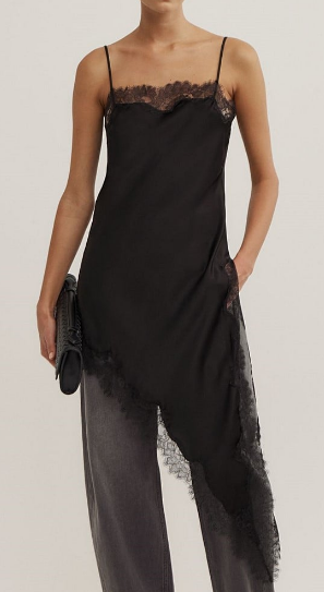 Nothing says spring like a pair of ecru jeans — but an asymmetrical lace cami raises the bar. Ivory satin pumps fall in line with warmer-weather dressing, while a structured leather trench coat adds a sultry, unexpected touch for cooler nights.