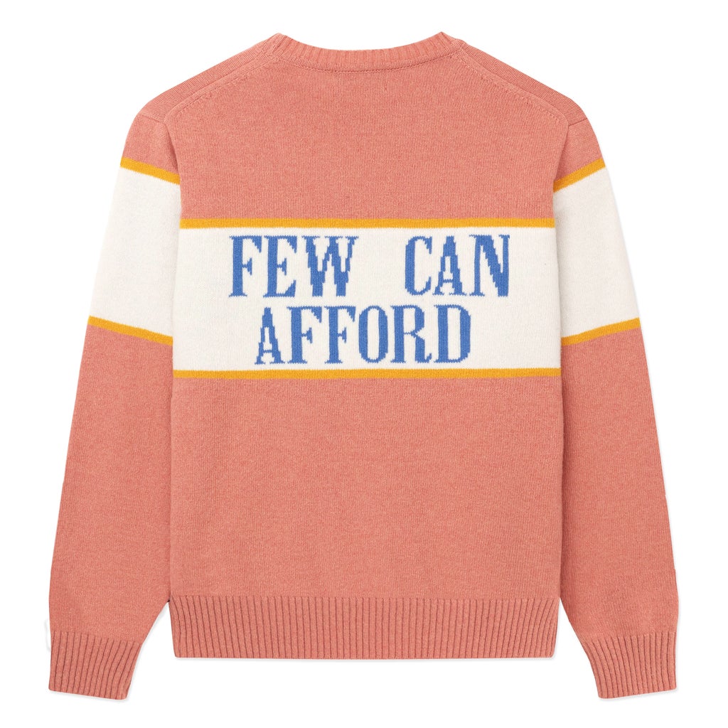 Carlson also joined forces with Gyles & George, the brand that popularized playful novelty jumpers in the 1980s, to recreate its "I'm a Luxury Few Can Afford" knit. Princess Diana most famously wore this piece with a stiff-collared white shirt when photographed at home with William and Harry, sporting the most '80s bouffant imaginable. "Designer Gyles Brandreth is a legend!" Carlson tells Refinery29. "A true polymath and a novelty jumper icon." Both knits, priced from $480, are available today.