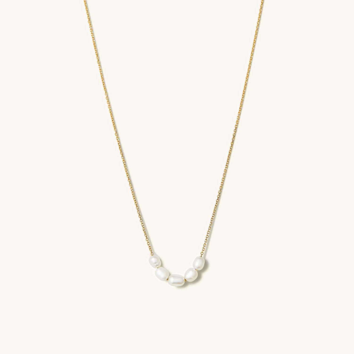 Mejuri, a Toronto-based brand that's beloved on Instagram, made several of the pieces worn by Eilish in the photos, including a pair of yellow gold studs with freshwater pearls, a gold chain with pearls strung in the centre, a matching bracelet, and four stackable rings.