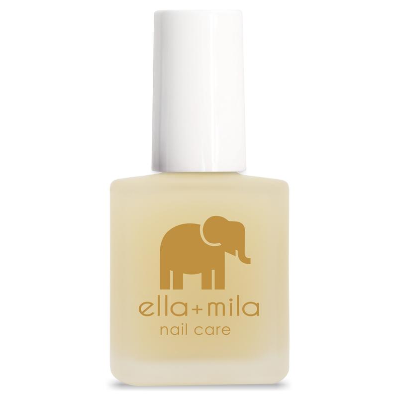 From left to right: Ella+Mila's base coat, nail polish, cuticle oil, and top coat.