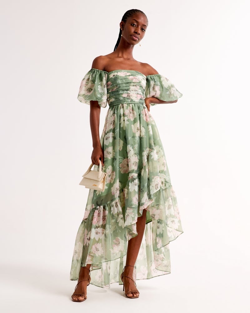 After seeing several of the brand’s dresses go viral in the past, I set out to try some new and bestselling styles from the Best Dressed Guest selection for myself — and discovered the store to be filled with dresses for every type of occasion, from formal to destination, and featuring spring trends like bubble hems and drop-waist styles. Read on to discover some of my favourite Abercrombie & Fitch spring and summer wedding guest-approved dresses. (For reference, I’m 5’3” and am wearing a standard medium size in each dress pictured).