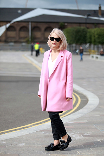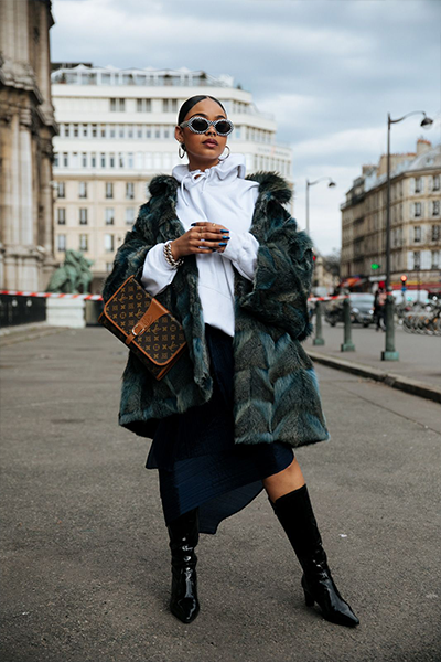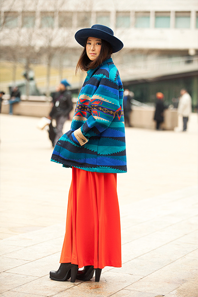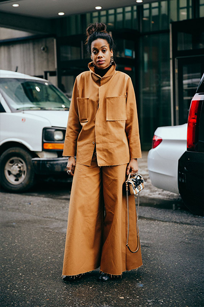 Never forget how accessories can take your outfit next-level — a prim clutch against a puffy cape, a pink beanie, a crossbody bag that's the color of your jacket.