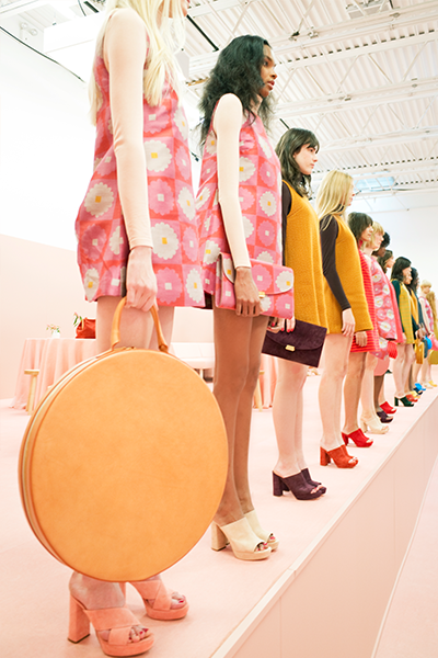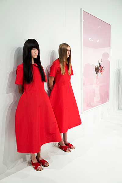 For the past two seasons, Mansur Gavriel has styled its shoes and bags on models in non-Mansur Gavriel clothing, though the vibrant red bell-shaped dresses and camel-colored coordinating top and pants provide hints about what their upcoming offerings will look like. “The ready-to-wear collection is a continuation of the concept of our brand: beautiful shapes and materials, a range of emotion expressed through texture and color,” says Gavriel. Still, the line-up appears to be grounded in a non-fussy, but still sophisticated way to dress: “We are always seeking that fine balance in which a product, while simple and easy to understand, also feels complex in its detail and shape — the material should feel rich and elevated, and the emotion both classic and modern,” Mansur adds.