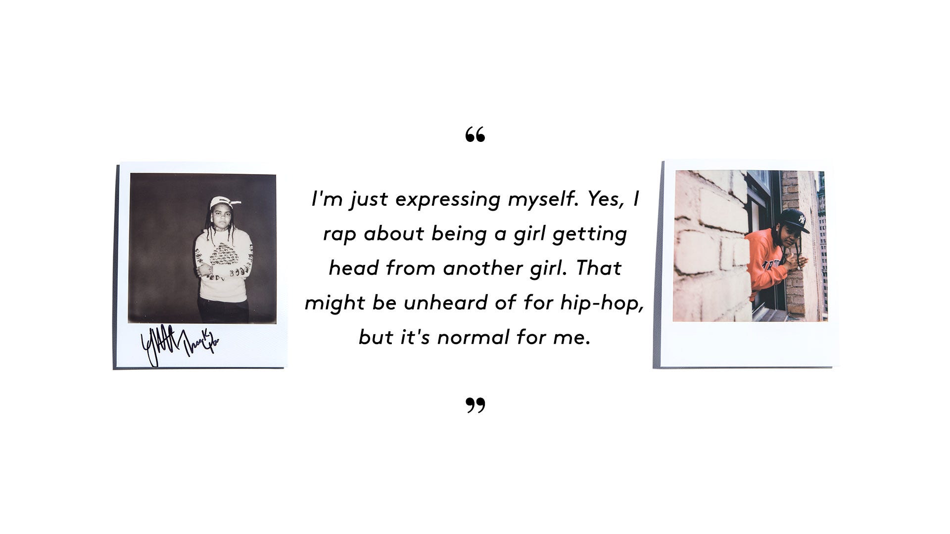 Still, the rapper does wax poetic about her "hoes" and conquests. And she argues that there isn’t anything wrong with that. "Yes, I rap about being a girl getting head from another girl," she says. "That might be unheard of for hip-hop, but it's normal for me. I’m just talking about the things that I do and want to do with women, the same way every man in hip-hop will rap about what he does with women."