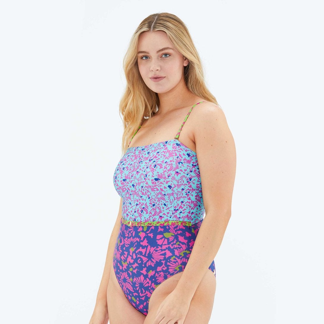 The result is the newly launched Brushstroke Collection marrying Summersalt's signature data-backed fit with Taylor's celebratory take on color and print (her motif for the collab even has "confetti" in its name). There are a total of six styles — five swimsuits and a breezy skirt — which pretty much feel like you're wrapping yourself up in the beautiful, carefree goodness of summer itself. The one-pieces range from sizes 2 through 22, while the skirt is available in XS through 2X. Think: layers of vibrant patterns fastened with all the belts and ribbons a woman could desire in her swimwear with the required coverage and support to boot.
