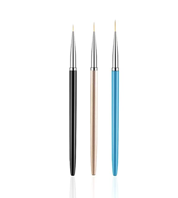 First, apply a base coat — especially if you're using a darker shade. R29 loves Nails.Inc Nailkale Superfood Base Coat. Nail artists recommend the 'three stripes' nail-painting trick: one swipe down the center to start, the one at each side to join up the color. Don't worry if the polish ends up too close to the edge. Invest in a tiny reusable nail art brush, like this one from Amazon, and dip it in polish remover to gently clean up the edges and to create that negative space. Try Cutex Nourishing Nail Polish Remover, which removes polish pigment without stripping nails.