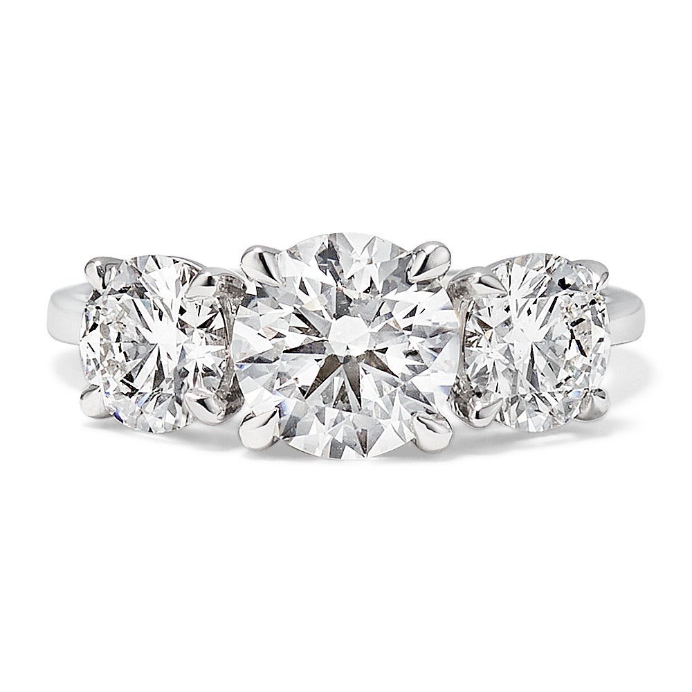 “A three-stone ring — also known as a trilogy ring — has a stone on each side of its center stone,” says Lynn. “This style has actually been gaining popularity for the past few years, but I think it’s only going to trend more as we shift away from traditional solitaire settings. It truly is gorgeous on its own, but if you’re pairing it with a wedding band, you just need something that’s very simple. You see much more elaborate wedding bands paired with simpler engagement ring settings, and vice versa.”