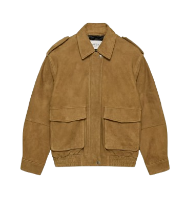 Spring’s fluctuating weather calls for smart layering, much like a suede bomber jacket and crochet cardigan. Dainty Mary Janes and a frame purse keep things feminine and light.