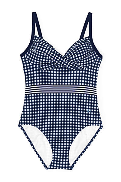 Did you know that Carrie Underwood has an activewear line called CALIA? Well, the brand offers cute swimsuit options, too. For sportier gals who prefer an athletic look, the silhouettes are ideal — the tops are akin to sports bras, with bust support and comfortable straps. The bottoms also give a secure fit, with full butt coverage and wide waistbands that don’t sit too uncomfortably high in case you’ve got other outdoorsy, watery, sporty activities planned. (One reviewer raved that she went on a long hike in her CALIA swimsuit and it didn’t budge once.) What sets CALIA apart from the usual athletic brands are the thoughtful feminine details, like strappy backs on one-pieces, flattering ruching, and cute prints.
