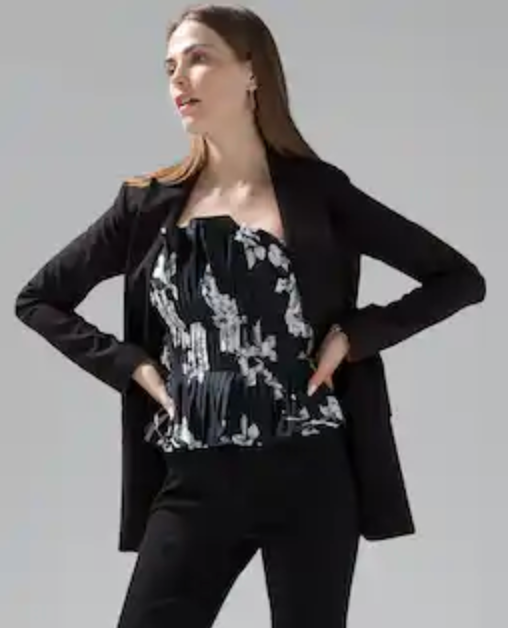 Airport dads were the main inspiration for this outfit, which I’m dubbing “tourist-core.” For a day of exploring in Cascais, Portugal, I chose to wear the long-sleeved shirt from the previous outfit with dark wash denim and a black blazer. For additional styling (and warmth!) I wore a gray sweater over my shoulders, which I promptly put on as the day’s temperature dropped.